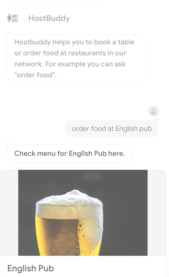 Restaurant will download HostBuddy merchant app on to their POS or to a tablet and completes registration, restaurant will be immediately visible on Google Assitant. Hostbuddy will pick up the inventory from POS and send orders from consumers, its plug & play AI.