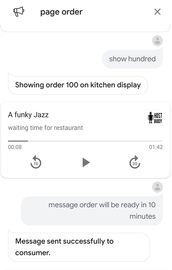 Consumer can order food at establishments using Hostbuddy Voice Assistant without downloading an app, that is directly from Gooogle Asistant on search bar or Facebook messenger. Hostbuddy will build the personalized menu from the POS to your guest, consumers will customize the order, make payment and complete the purchase. Order goes directly to POS. Hostbuddy sends confirmation link to guest and staff notifies when order is ready for pickup.